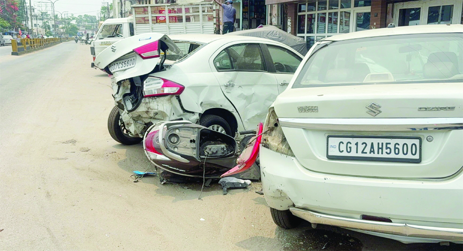 नशे की स्थिति में स्विफ्ट कार चालक ने तीन गाड़ियों को किया क्षतिग्रस्त