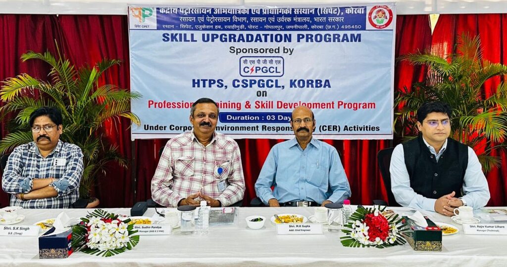 कोरबा 12 नवंबर 2025- हसदेव ताप विद्युत गृह (एचटीपीएस) कोरबा पश्चिम की ओर से नई परियोजना 2_660 मेगावाट विद्युत संयंत्र से प्रभावित 11 गांवों के युवाओं के लिए केंद्रीय पेट्रो रसायन अभियांत्रिकी एवं प्रौद्योगिकी संस्थान (सिपेट) की मदद से पांच दिवसीय रोजगारमूलक कार्यों का कौशल विकास प्रशिक्षण दिया गया। छग. स्टेट पाॅवर जनरेशन कंपनी औद्योगिक पर्यावरणीय उत्तरदायित्व के लिए समर्पित भाव से कार्य कर रही है। आने वाले दिनों में प्रभावित ग्राम लोतलोता, स्याहीमुड़ी, चुईया, जमनीपाली, झाबू, पंडरीपानी, नवागांव-कला, डिंडोलभाठा, बिरवट, डोडकधरी और चिरहुट में छग. स्टेट पाॅवर जनरेशन कंपनी सीईआर के कार्यों को विस्तारित करेगी।