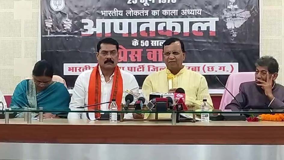प्रेसवार्ता में भाजपा जिलाध्यक्ष गोपाल मोदी, नगर निगम महापौर संजू देवी राजपूत, पूर्व गृहमंत्री ननकीराम कंवर, पूर्व महापौर जोगेश लांबा, पार्षद नरेंद्र देवांगन, ज्योति नंद दुबे, पार्षद हितानंद अग्रवाल उपस्थित रहे। भाजपा नेता ने कहा कि आपातकाल के दौरान संजय गांधी जैसे गैर-संवैधानिक व्यक्ति नीतियां बनाने लगे। वही एमआईएसए जैसे काले कानून के तहत एक लाख से अधिक लोगों को बिना मुकदमे के जेलों में ठूंसा गया। जिनमें जयप्रकाश नारायण, अटल बिहारी वाजपेयी, लालकृष्ण आडवाणी, मुरली मनोहर जोशी जैसे राष्ट्रपुरुष शामिल थे। मौजूदा रक्षामंत्री राजनाथ सिंह को उस स्थिति में पैरोल नहीं दी गई जब उनकी माता का निधन हो गया था। आज भी कांग्रेस तानाशाही का रवैय्या अपनाए हुए हैं। आज उसे लोकतंत्र खतरे में दिख रहा है और उसी कांग्रेस की इंदिरा ने लोकतंत्र का कबाड़ा कर दिया था।प्रेसवार्ता में जानकारी दी गई कि आपातकाल की 50वीं बरसी 25 जून को कोरबा में एक विशेष लोकतंत्र संगोष्ठी और प्रदर्शनी का आयोजन किया जाएगा। जिसमें आपातकाल के काले पक्ष जैसे प्रेस सेंसरशिप, मानवाधिकार हनन, राजनीतिक दमन और संस्थागत नियंत्रण को प्रदर्शित किया जाएगा। इस दिन को लोकतंत्र के पुनस्मरण और जनजागरण के रूप में मनाया जाएगा।