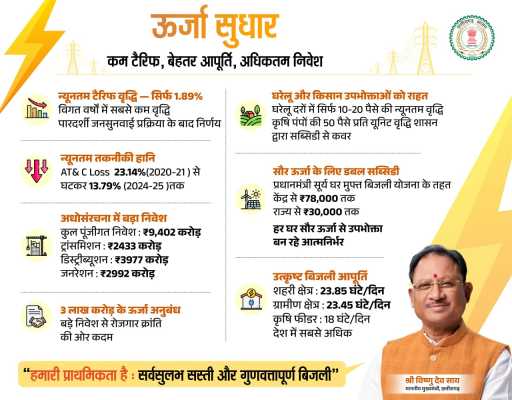 टैरिफ में न्यूनतम वृद्धि, आपूर्ति में गुणवत्ता – छत्तीसगढ़ में ऊर्जा सुधारों को मिल रहा व्यापक जनसमर्थन: मुख्यमंत्री श्री साय