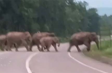 नेशनल-हाईव पर पार करते दिखा 46 हाथियों का झुंड, सायरन सिस्टम से ग्रामीणों को किया अलर्ट