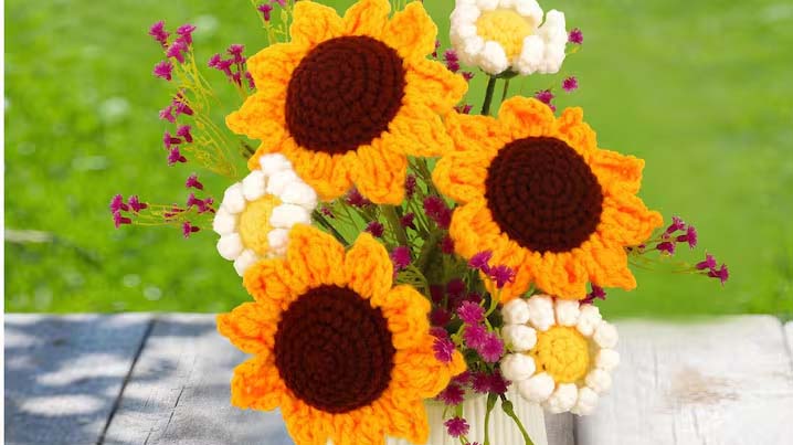 सूरजमुखी बनाने के लिए पीले और भूरे रंग के ऊन का उपयोग किया जा सकता है। सबसे पहले पीले ऊन से बड़े गोलाकार बनाकर उसे सूरजमुखी की पंखुडिय़ों का आकार दें। इसके बाद भूरे ऊन से बीच का हिस्सा बनाएं, जिसमें काले या भूरे रंग के छोटे-छोटे गोले जोड़ें। इस प्रकार आप आसानी से अपने घर के लिए एक खूबसूरत सूरजमुखी तैयार कर सकते हैं, जो आपके घर की सजावट में नयापन लाएगा।