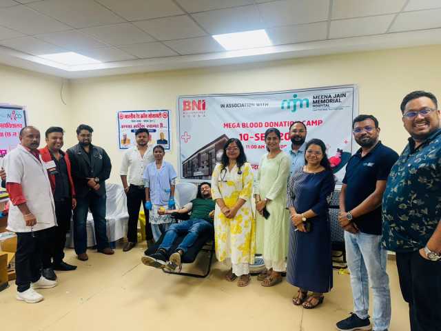 कोरबा। समाज सेवा और मानवता की दिशा में एक सराहनीय पहल करते हुए एमजेएम हॉस्पिटल, टीपी नगर कोरबा में बीएनआई बिलियोनायर्स के सहयोग से रक्तदान शिविर का सफल आयोजन किया गया। विशाल मेगामार्ट के सामने स्थित मीना जैन मेमोरियल (MJM) हॉस्पिटल में बुधवार 10 सितम्बर 2025 को आयोजित इस शिविर में सुबह 11 बजे से शाम 5 बजे तक बड़ी संख्या में दाताओं ने उत्साहपूर्वक रक्तदान किया।