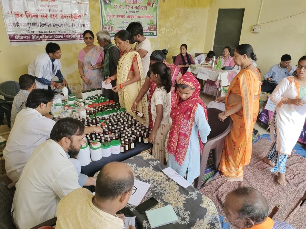 कोरबा 14 अक्टूबर 2025/आयुष विभाग कोरबा द्वारा जिला स्तरीय आयुष स्वास्थ्य शिविर का आयोजन रविवार को कांशी नगर कोरबा में किया गया। शिविर में आयुर्वेद चिकित्सा पद्धति द्वारा 403 एवं होम्योपैथी चिकित्सा पद्धति द्वारा 104 मरीजों का सफल उपचार किया गया। यह आयुष स्वास्थ्य शिविर छ.ग. राज्य महोत्सव के तत्वाधान में वयोवृद्ध मरीजों का विशेष उपचार हेतु आयोजित किया गया। जिसमें वात रोग, चर्म रोग, गुदा एवं मल द्वार रोग मूत्र रोग, एनीमिया, आस्टियो आर्थोराइटिस एवं मस्कूलोस्केलेटल डिसआर्डर, मधुमेह, उच्च रक्तचाप, मासिक धर्म में अनियमितता, श्वेत प्रदह, चर्मरोग के मरीजों का सफल उपचार किया गया।