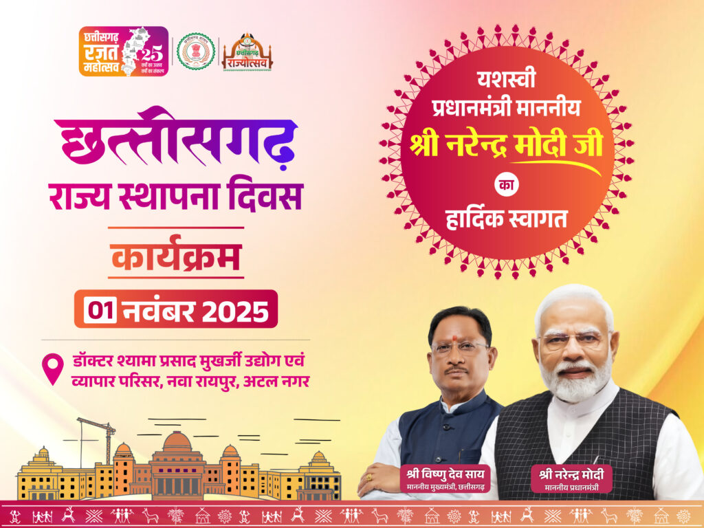 रायपुर 28 अक्टूबर 2025. राज्य स्थापना दिवस 2025 के अवसर पर प्रदेश के सभी जिला मुख्यालयों में भव्य राज्योत्सव कार्यक्रम का आयेाजन किया जाएगा। जिला मुख्यालयों में आयोजित कार्यक्रमों में राज्य के मंत्रीगण, सांसद तथा विधायक मुख्य अतिथि के रूप में शामिल होंगे। राज्य शासन ने प्रत्येक जिले के लिए मुख्य अतिथि के नामों की घोषणा की है।