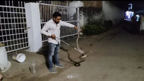 जिद्दी नाग ने भयभीत किया लोगों को, रेस्क्यू कर छोड़ा जंगल में
