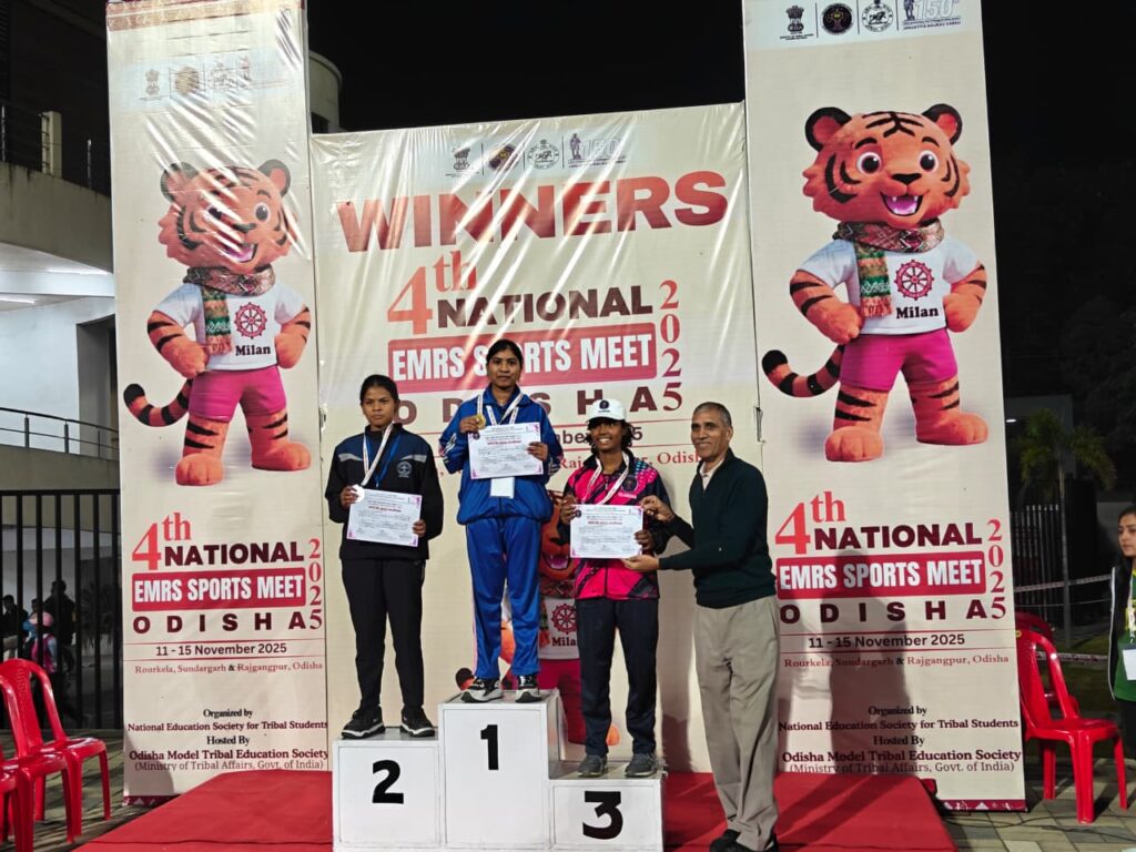 कोरबा 18 नवंबर 2025/ एकलव्य आदर्श आवासीय विद्यालय छुरीकला के विद्यार्थियों ने राष्ट्रीय आदिवासी छात्र शिक्षा समिति नई दिल्ली द्वारा एकलव्य आदर्श आवासीय विद्यालयों के लिए आयोजित चौथी ई.एम.आर.एस. राष्ट्रीय खेलकूद प्रतियोगिता में शानदार प्रदर्शन करते हुए 7 स्वर्ण, 6 रजत और 1 कांस्य सहित कुल 14 पदक जीतकर जिले एवं पी एम श्री एकलव्य आदर्श आवासीय विद्यालय छुरीकला का मान पूरे देश में बढ़ाया विद्यालय की छात्रा अस्मिता ने तैराकी में 3 स्वर्ण पदक, रिया ने 2 स्वर्ण पदक 1 रजत पदक और आरुशी ने 1 स्वर्ण पदक प्राप्त किया।