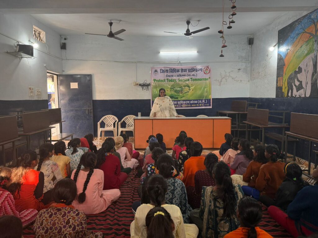 कोरबा 01 जनवरी 2026/ प्रधान जिला एवं सत्र न्यायाधीश/अध्यक्ष जिला विधिक सेवा प्राधिकरण कोरबा जिला कोरबा के निर्देशानुसार 01 जनवरी 2026 को बालिका गृह आई.टी.आई.रामपुर में ^^Potect Today, Secure Tommorrow^^ शीर्षक पर पर्यावरण संरक्षण के संबंध में आयोजित विधिक जागरूकता शिविर में सचिव जिला विधिक सेवा प्राधिकरण कोरबा के द्वारा अपने उद्बोधन में कहा कि ‘पर्यावरण‘ पृथ्वी के चारों ओर से ढकी एक मोटी चादर के समान है, जो पृथ्वी पर जीवन की रक्षा करता है। साथ-साथ जीवन जीने के लिए आवश्यक तत्व को बनाए रखने में मदद करता है।