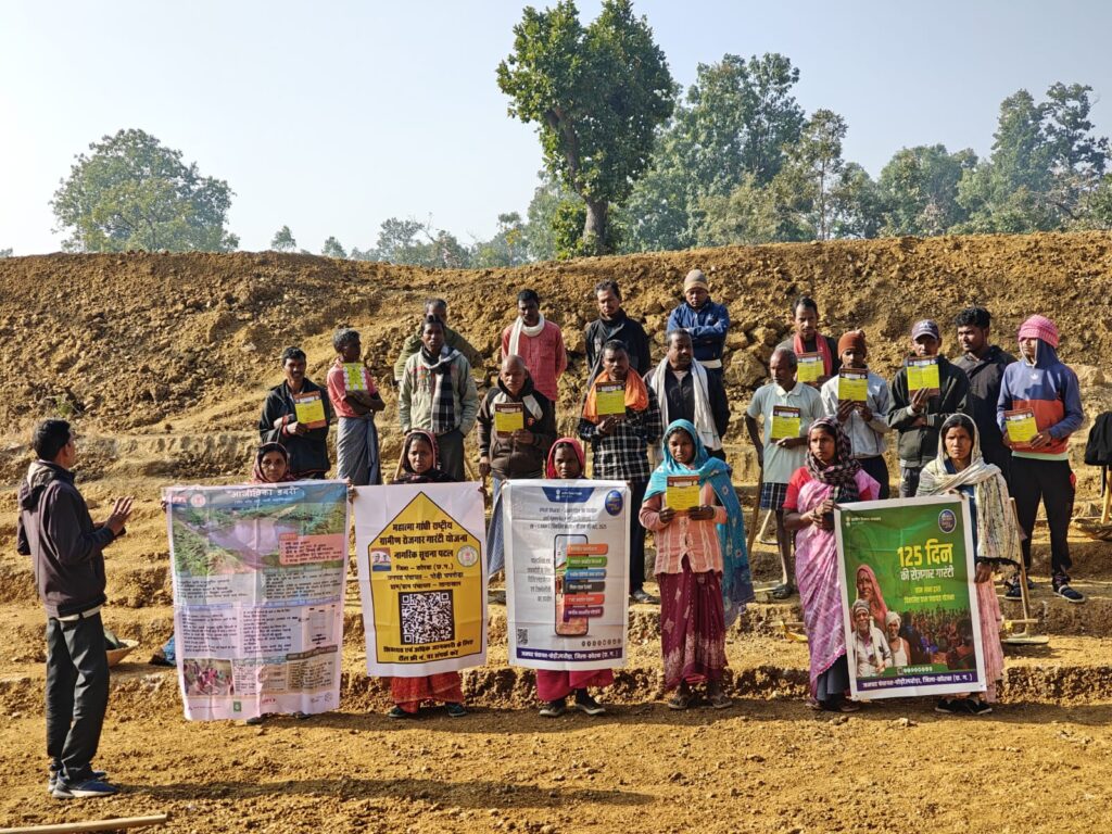 कोरबा 09 जनवरी। कलेक्टर श्री कुणाल दुदावत के निर्देशानुसार एवं मुख्य कार्यपालन अधिकारी जिला पंचायत के मार्गदर्शन में महात्मा गांधी राष्ट्रीय ग्रामीण रोजगार गारंटी योजना ,मनरेगा अंतर्गत जिले की ग्राम पंचायतों में 07 जनवरी को रोजगार दिवस का आयोजन किया गया। रोजगार दिवस के अवसर पर ग्रामीणों एवं श्रमिकों को विकसित भारतदृजी राम जी के नवीन प्रावधानों की विस्तृत जानकारी दी गई।