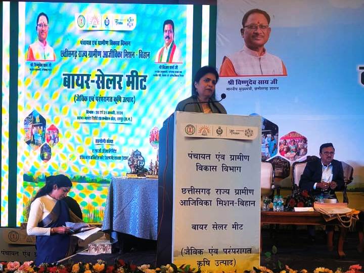 रायपुर 21 जनवरी 2026. नवा रायपुर के एक निजी होटल में आयोजित दो दिवसीय बायर-सेलर मीट 2026 में राज्य के बिहान महिला समूहों और इनके एफपीओ को जर्बदस्त रिस्पॉन्स मिला है, इससे महिला समूहों का मनोबल बढ़ा है। पंचायत एवं ग्रामीण विकास विभाग द्वारा आयोजित यह बायर-सेलर मीट 20 एवं 21 जनवरी को नया रायपुर स्थित निजी होटल में आयोजित हुई। इस दौरान खरीददार और महिला समूहों के प्रतिनिधियों के बीच उनके उत्पादों की मात्रा, क्वालिटी और मार्केेटिंग को लेकर कई सहमतियां भी बनी।