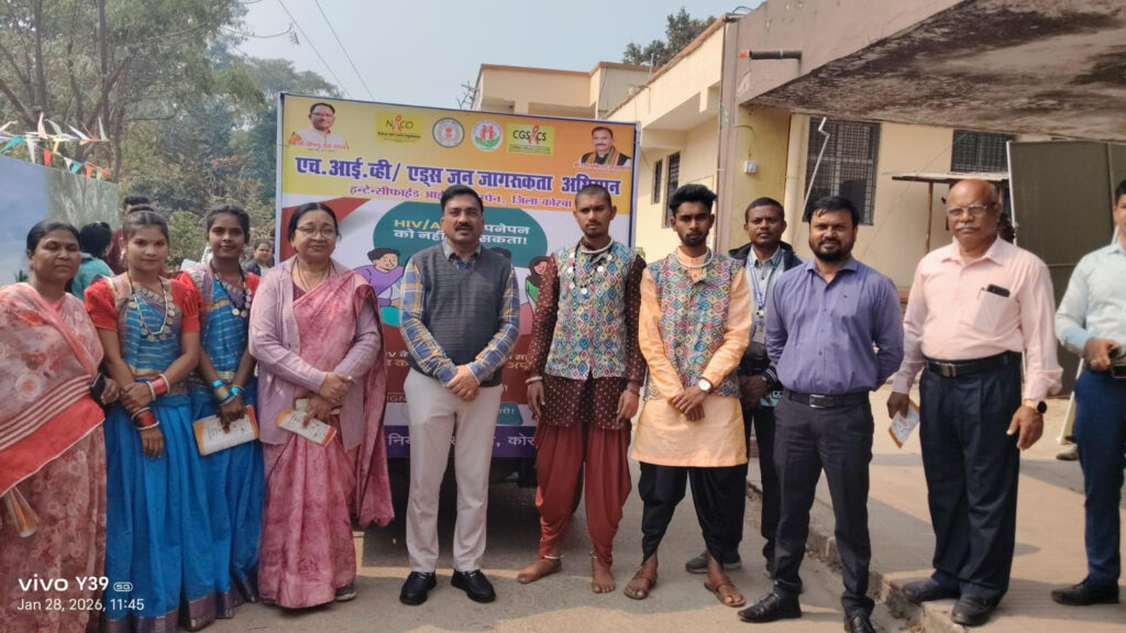 कोरबा 28 जनवरी 2026/ कलेक्टर श्री कुणाल दुदावत के मार्गदर्शन में 28 जनवरी को इंटेंसिफाईड एचआईवी/एड्स जागरूकता कार्यक्रम के अंतर्गत सघन प्रचार प्रसार हेतु एड्स जागरूकता रथ तथा कला जत्त्था दल को मुख्य चिकित्सा एवं स्वास्थ्य अधिकारी के द्वारा हरी झंडी दिखा कर रवाना किया गया। इस अवसर पर डॉ.सी.के.सिंह, जिला स्वास्थ्य अधिकारी, डॉ. बी.आर.रात्रे नोडल अधिकारी एड्स, श्री कुमार पुष्पेश, जिला टीकाकरण अधिकारी, श्री पद्माकर शिन्दे, जिला कार्यक्रम प्रबंधक, कला जत्था के सदस्य तथा अन्य अधिकारी, कर्मचारी उपस्थित थे।