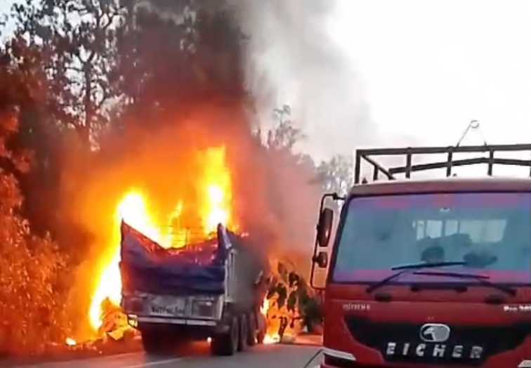 आमने सामने से टक्कर: दो ट्रक खाक हुए, एक ड्राइवर जिंदा जला
