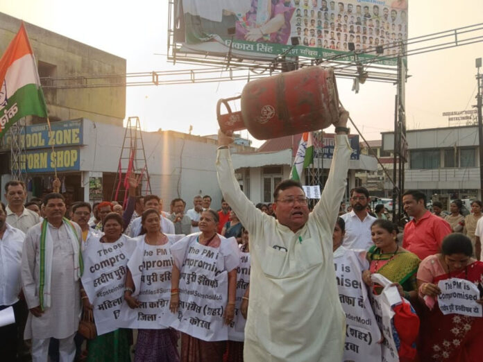 रसोई गैस के दामों में बढ़ोत्तरी, केन्द्र सरकार के खिलाफ कांग्रेसियों ने किया प्रदर्शन