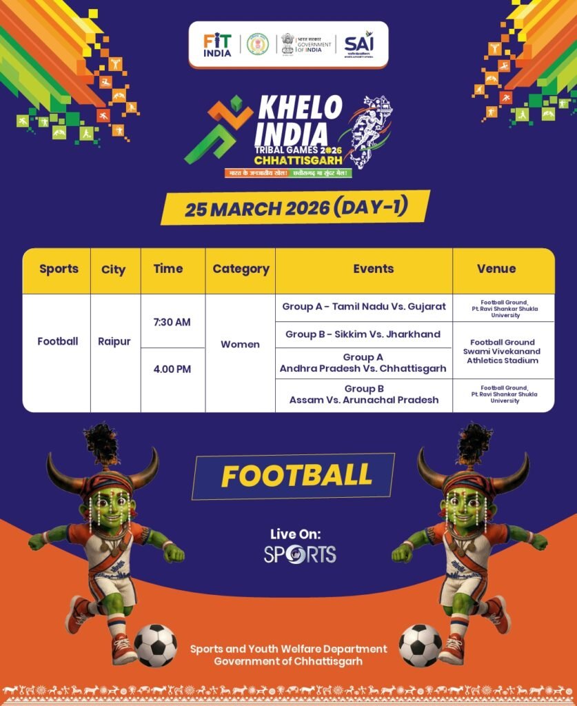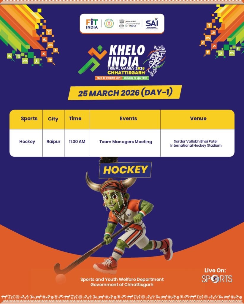 रायपुर 24 मार्च 2026। बुधवार 25 मार्च से शुरू हो रहे पहले खेलो इंडिया ट्राइबल गेम्स की मेजबानी के लिए छत्तीसगढ़ पूरी तरह तैयार है और राज्य के उपमुख्यमंत्री श्री अरुण साव का मानना है कि यह “राज्य के खेल पारिस्थितिकी तंत्र को बड़ा बढ़ावा देगा।” खेल एवं युवा कल्याण मंत्री श्री साव ने मंगलवार को आयोजित एक प्रेस कॉन्फ्रेंस में कहा कि खेलो इंडिया ट्राइबल गेम्स भारतीय खेल इतिहास में एक “मील का पत्थर” साबित होगा।