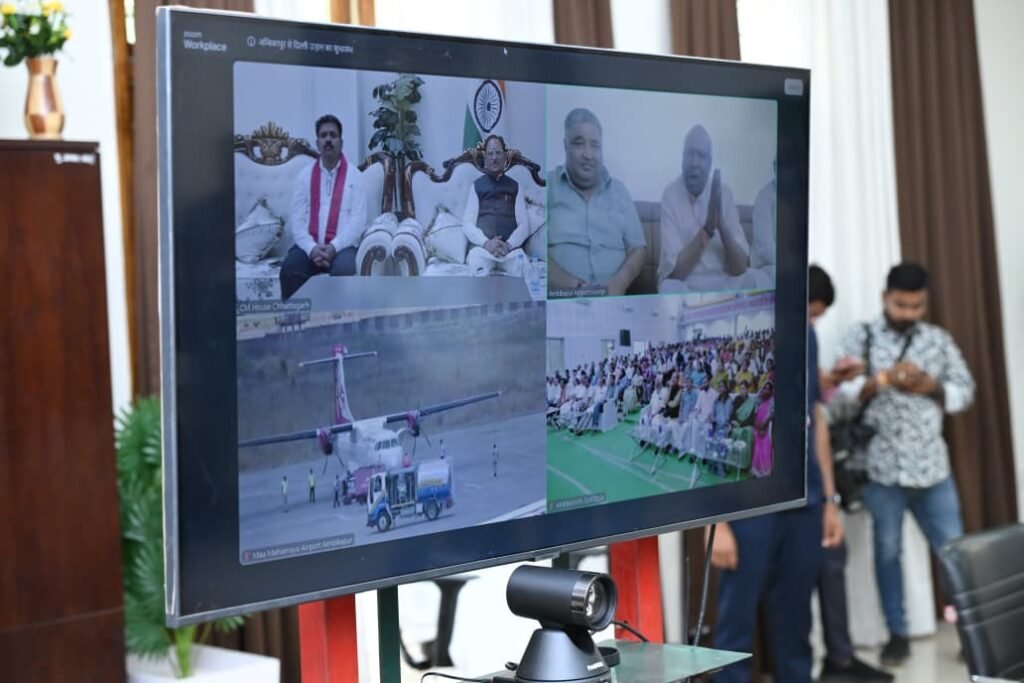 रायपुर 30 मार्च 2026. प्रदेश में हवाई संपर्क को सुदृढ़ बनाने की दिशा में एक महत्वपूर्ण कदम उठाते हुए मुख्यमंत्री श्री विष्णु देव साय ने आज नेताजी सुभाष चंद्र बोस राज्य पुलिस अकादमी, चंदखुरी से अंबिकापुर–दिल्ली – कोलकाता हवाई सेवा का वर्चुअल शुभारंभ किया। इस अवसर पर उन्होंने कहा कि राज्य सरकार प्रदेश के प्रमुख शहरों को विमान सेवाओं से जोड़ने के लिए निरंतर प्रयासरत है, जिससे आमजन को भी सुलभ हवाई यात्रा का लाभ मिल सके।